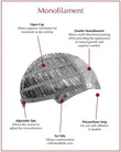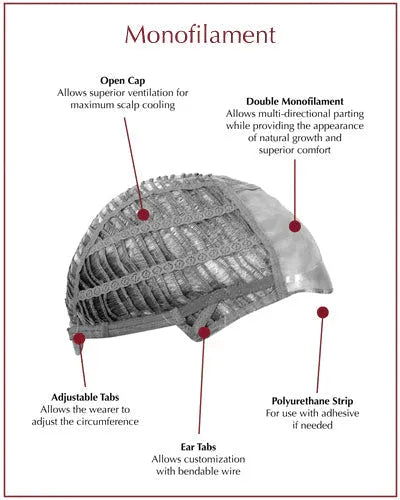 • Cap Design: Monofilament Top, Wefted Back