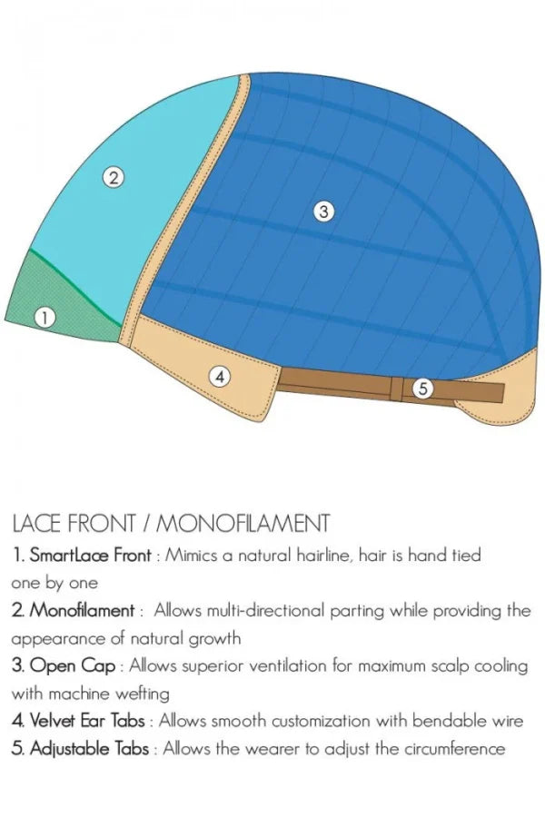 - Cap Design: Lace Front, Monofilament, Wefted Back