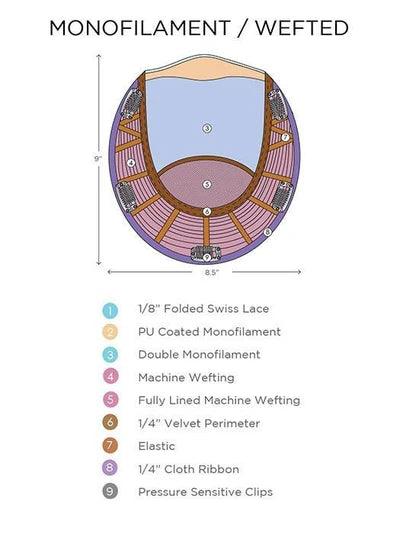 • Base Construction: Double Monofilament, Mini Lace Front, Wefted